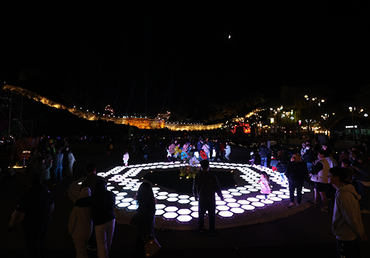 - 고창읍성 둘레의 19개 고을의 각자성석을 상징하는 조명과 그 주위를 돌며 감성놀이를 체험하는 LED 조명 연출